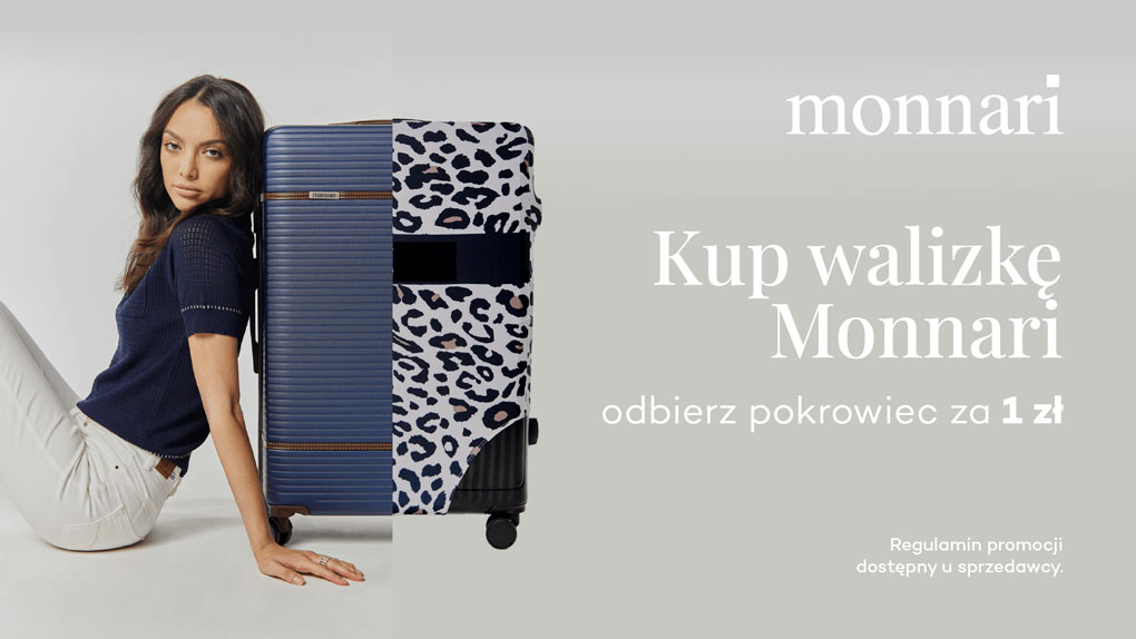 Kup dowolną walizkę Monnari i odbierz stylowy pokrowiec za jedyne 1 zł! Dodaj wyjątkowy akcent do swojego bagażu i chroń go w podróży. Skorzystaj z promocji już dziś!